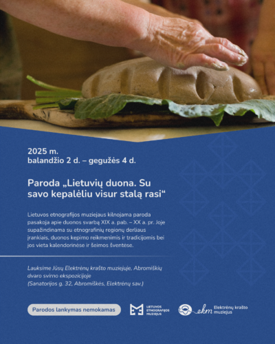 Paroda veiks 2025 m. balandžio 2 d. – gegužės 4 d. Elektrėnų krašto muziejuje, Abromiškių dvaro svirno ekspozicijoje (Sanatorijos g. 32, Abromiškės, Elektrėnų sav.).