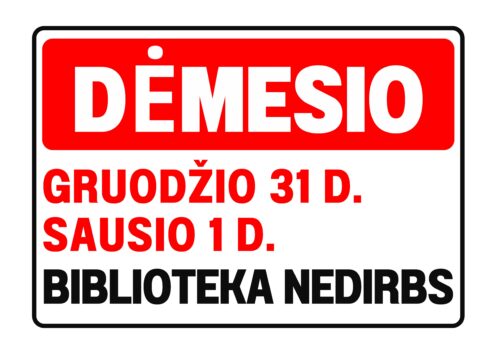 Mieli lankytojai, informuojame, kad gruodžio 31 d. ir sausio 1 d. biblioteka nedirbs.