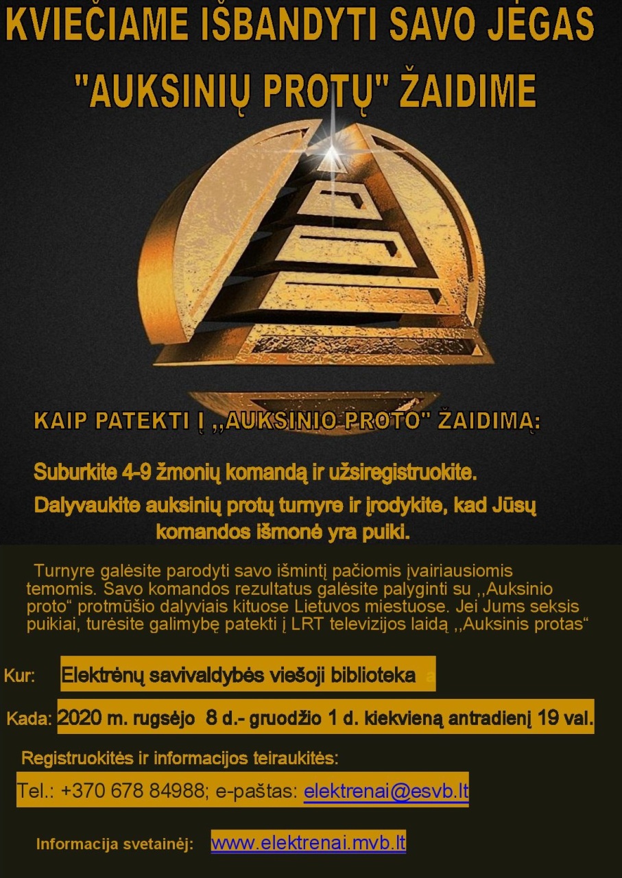 Kviečiame visus norinčius išbandyti savo jėgas Auksinių protų žaidimuose.