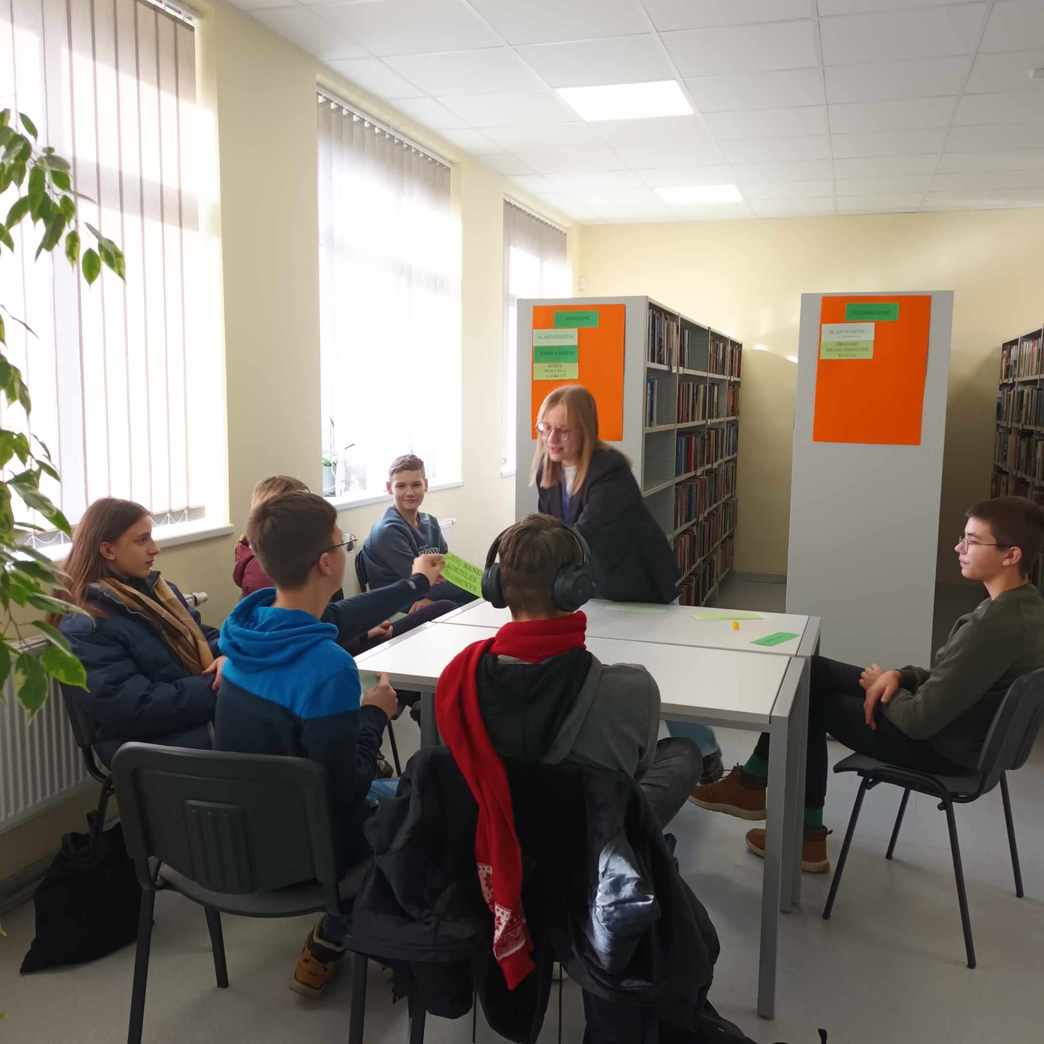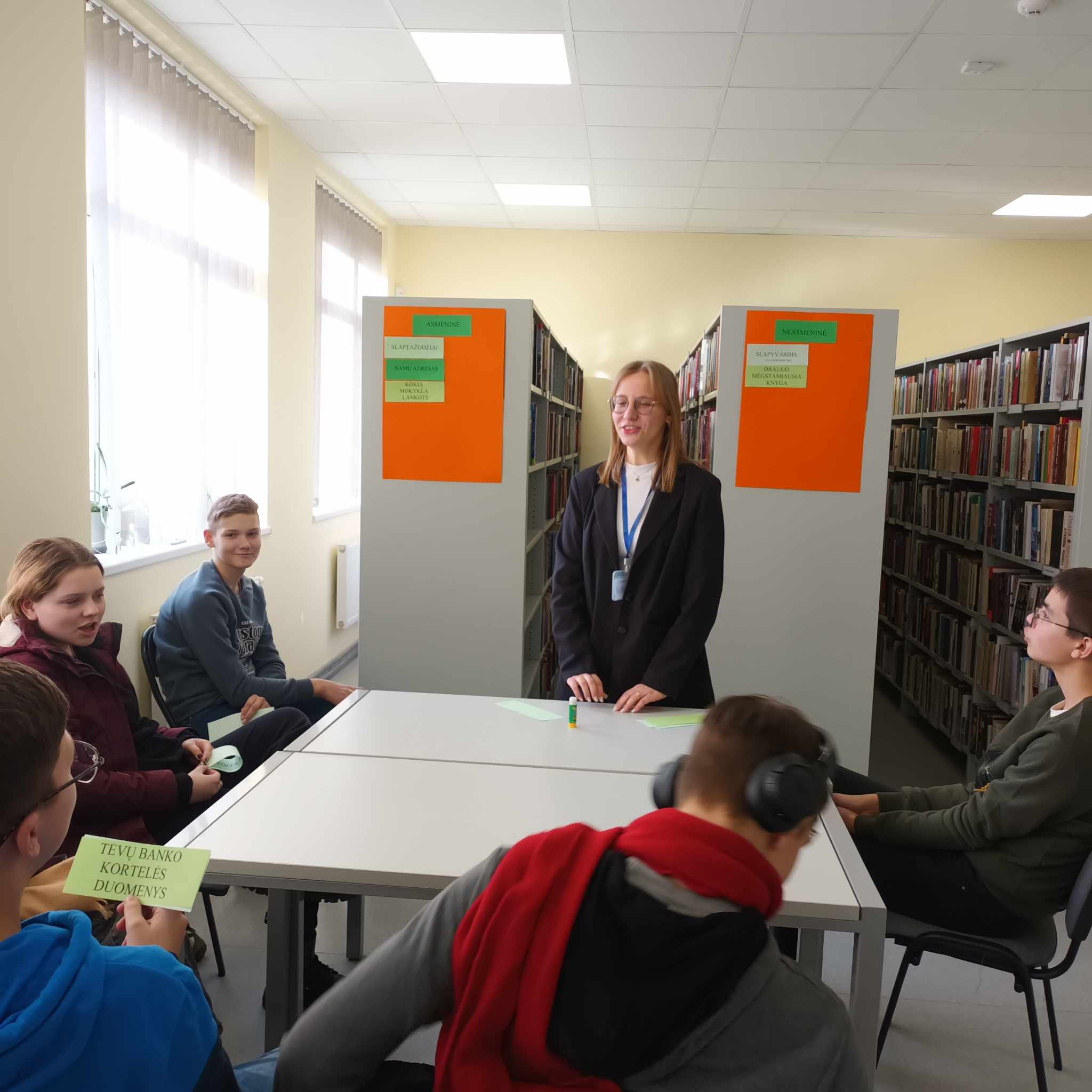 Diskusija jaunimui su bibliotekos savanorėmis apie saugų elgesį internete.