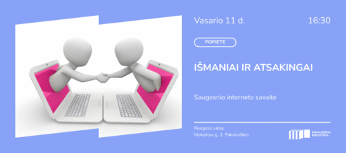 Vasario 11 d. Pakalniškių bibliotekoje vyko Saugesnio interneto savaitės renginys. Jo metu vaikai ir jaunuoliai sužinojo svarbiausias saugaus interneto naudojimo taisykles, galimus pavojus virtualioje erdvėje ir sužinojo kaip jų išvengti. Vaikai dalijosi savo ir artimųjų patirtimi apie virtualioje erdvėje patirtus pavojus.