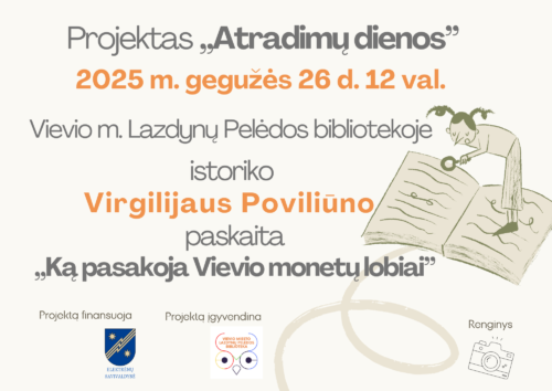 Paskaita „Ką pasakoja Vievio monetų lobiai” yra Elektrėnų savivaldybė finansuojamo projekto „Atradimų dienos” dalis.