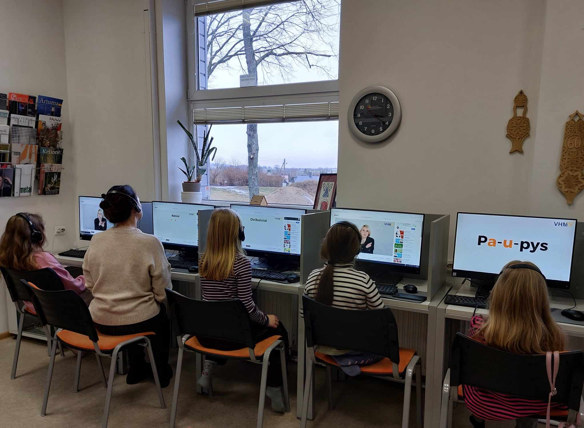 Renginys skirtas Tarptautinei gimtosios kalbos dienai. Kietaviškių dienos centro vaikai: Augustė, Guoda, Meida, Radvilė stebėjo filmuką apie lietuvių kalbos garsus: balses, dvibalses, mišrius dvigarsius.