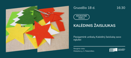 Ar žinai, kad kiekvienas Kalėdinis žaisliukas eglutėje ne tik kuria šventinę nuotaiką, bet ir pasakoja savo istoriją? Pakalniškių bibliotekoje pasitelkus fantaziją vaikai kūrė savo unikalų žaisliuką, kuris papuoš Kalėdinę eglutę ir džiugins visą šeimą!
