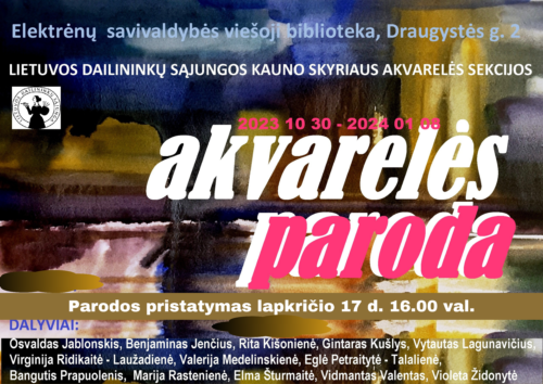 Kauno akvarelininkų sekcijos tapybos darbų parodos pristatymas.