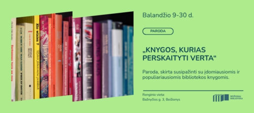 Kviečiame susipažinti su bibliotekos knygomis, kurias verta perskaityti. Skirta Lietuvos Nacionalinei bibliotekų savaitei paminėti.