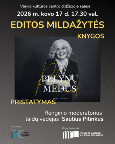 „mano gyvenime buvo tokių gražių dalykų, kad būtų nuodėmė jų nepapasakoti. Buvo ir istorijų, pasidėjusių visai neromantiškai, bet išsivysčiusių į aukščiausią žmogiškų jausmų būseną“ , – taip sako Edita Mildažytė apie savo knygą „Pelynų medus“. Antradienio vakare Vievio m. biblioteka pakvietė visus norinčius į Vievio kultūros centro salę susitikti su perkamiausios knygos autore, televizijos žurnaliste, laidų redaktore, filmų kūrėja Edita Mildažyte. Dėkojame už atvirą, įdomų ir nuoširdų susitikimą, o laidų vedėjui, menotyrininkui Sauliui Pilinkui už puikų renginio moderavimą.