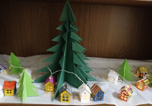 Edukacija, kurios metu kursime šventinio kaimo maketą – mažą Kalėdų pasaulį, kuriame spindės nameliai, gatvelės, medžiai.