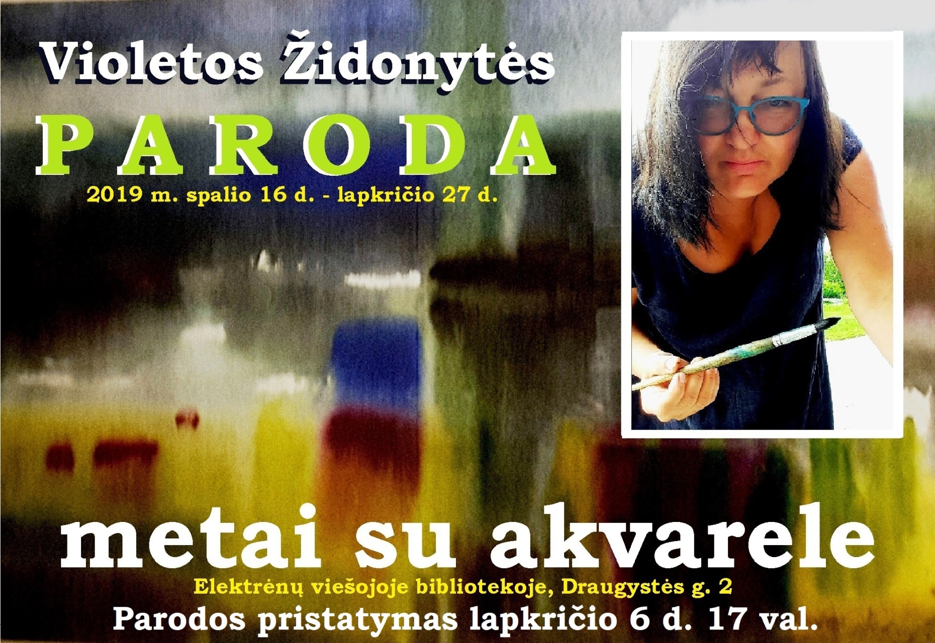 2019 m. lapkričio 6 d. 17 val. maloniai kviečiame į Violetos Židonytės parodos „Metai su akvarele“ pristatymą Elektrėnų savivaldybės viešojoje bibliotekoje. Paroda veiks nuo spalio 16 d. iki lapkričio 27 d.