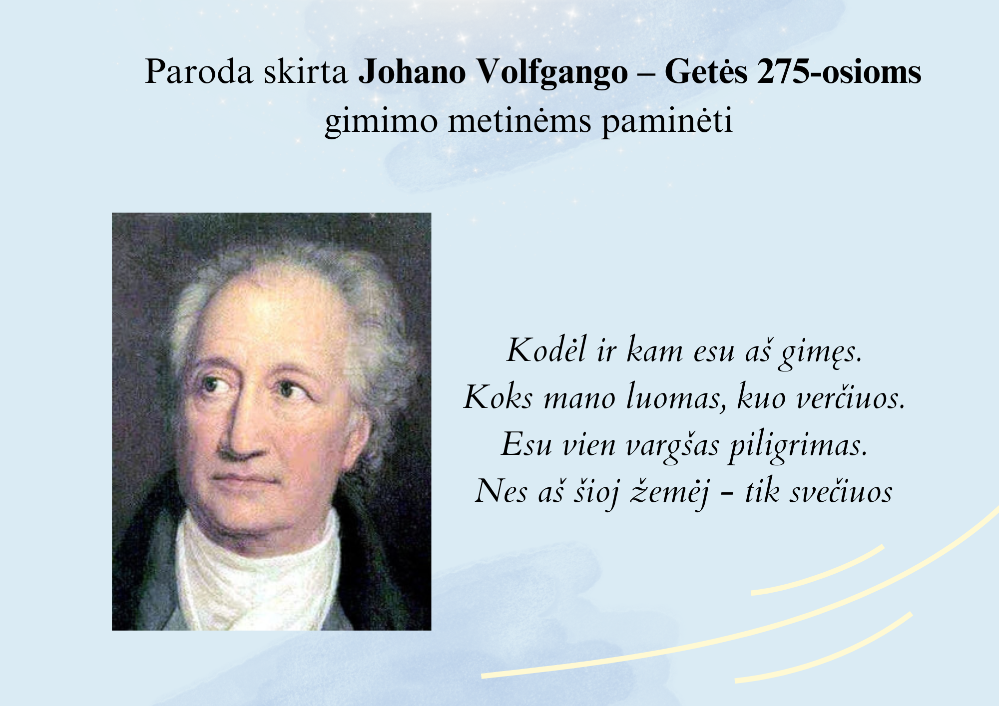 Lit. paroda „Johanas Volfgangas – Getė – žymus vokiečių poetas, prozininkas, dramaturgas“