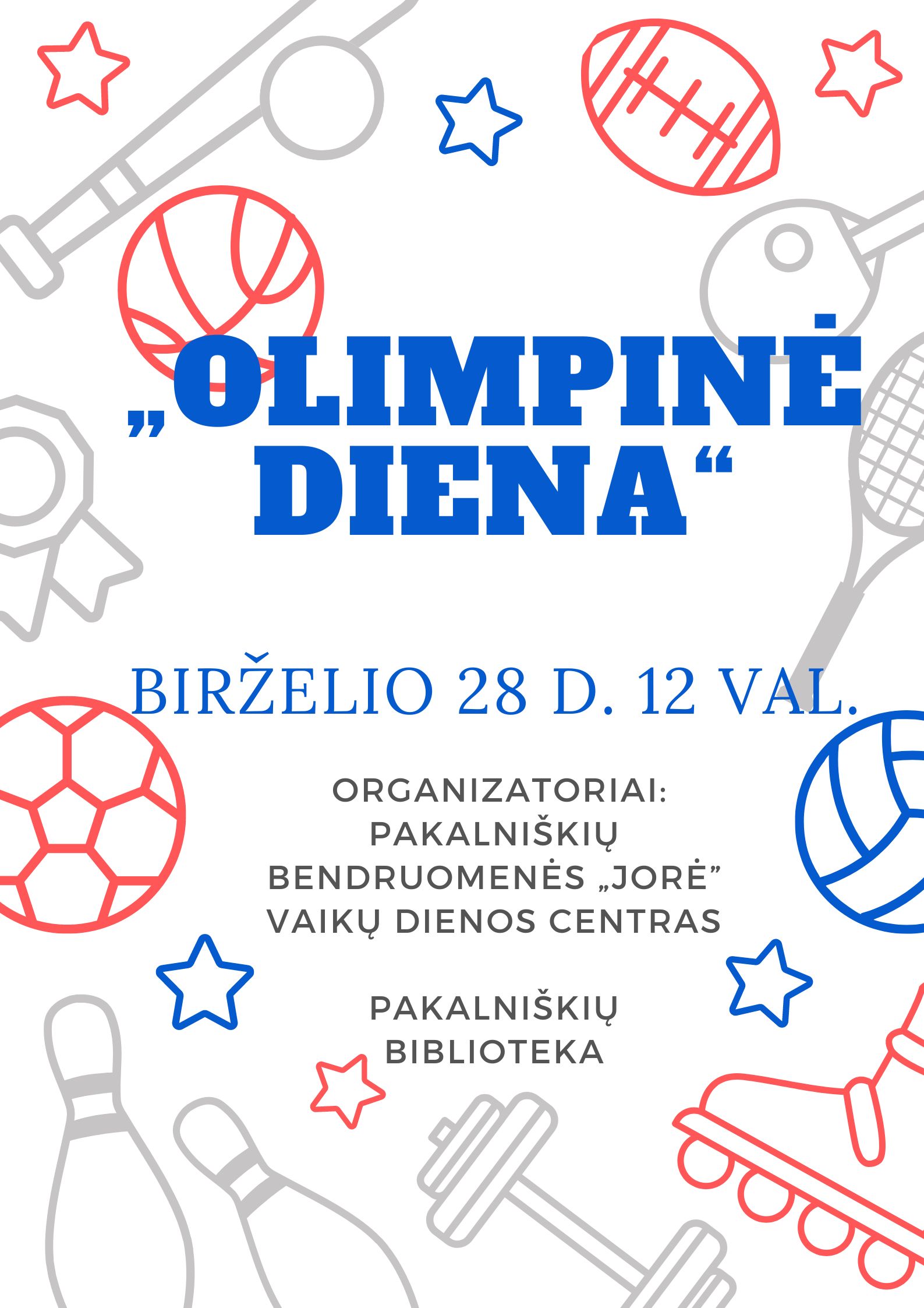 1894 m. birželio 23 d. buvo įkurtas Tarptautinis olimpinis komitetas, tad kasmet birželio 23-ąją minima Tarptautinė olimpinė diena. Lietuva šiais metais mini Olimpinį šimtmetį, kai 1924 m. pirmą kartą Lietuvos sportininkai dalyvavo vasaros olimpinėse žaidynėse. Renginys skirtas Pakalniškių bendruomenės „Jorė” vaikų dienos ugdytiniams.