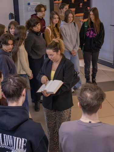 Elektrėnų bibliotekoje lankėsi Elektrėnų „Versmės“ gimnazistai. Pažintinės ekskursijos „Tėvų akademija: įkvėpkime kartu.“ metu mokiniai susipažino su bibliotekos paslaugomis, sužinojo, kaip rasti norimą knygą, kokios meninės parodos eksponuojamos bibliotekoje.