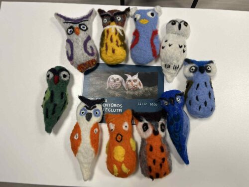 Vievio Lazdynų Pelėdos bibliotekos kolektyvas su skaitytojais ir kūrybiniam procesui vadovavusia Dalia Kobeleviene prisijungė prie šios akcijos ir siunčia 10 su meile pagamintų vilnonių Pelėdų puošti Prezidentūros kalėdinę eglę.