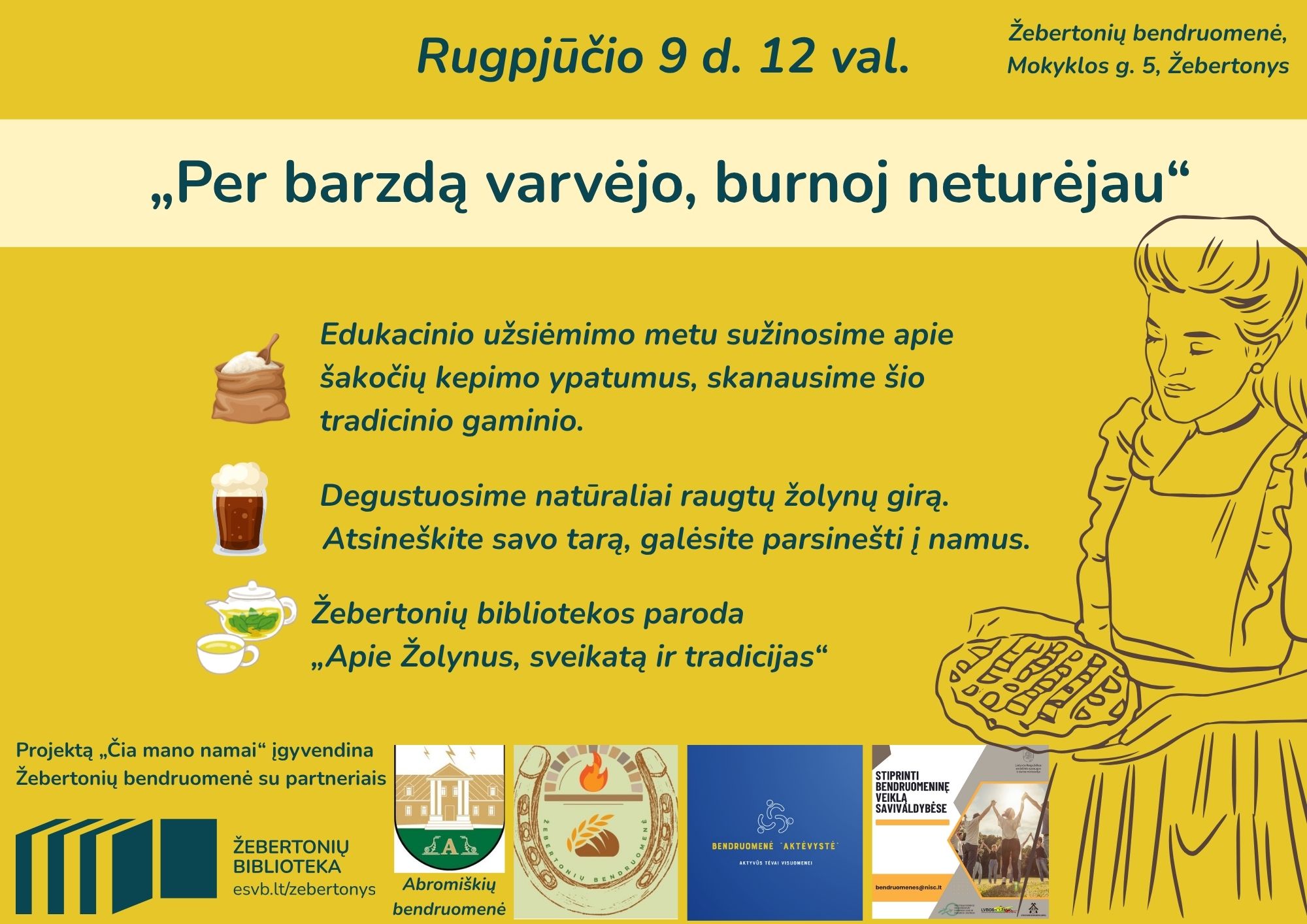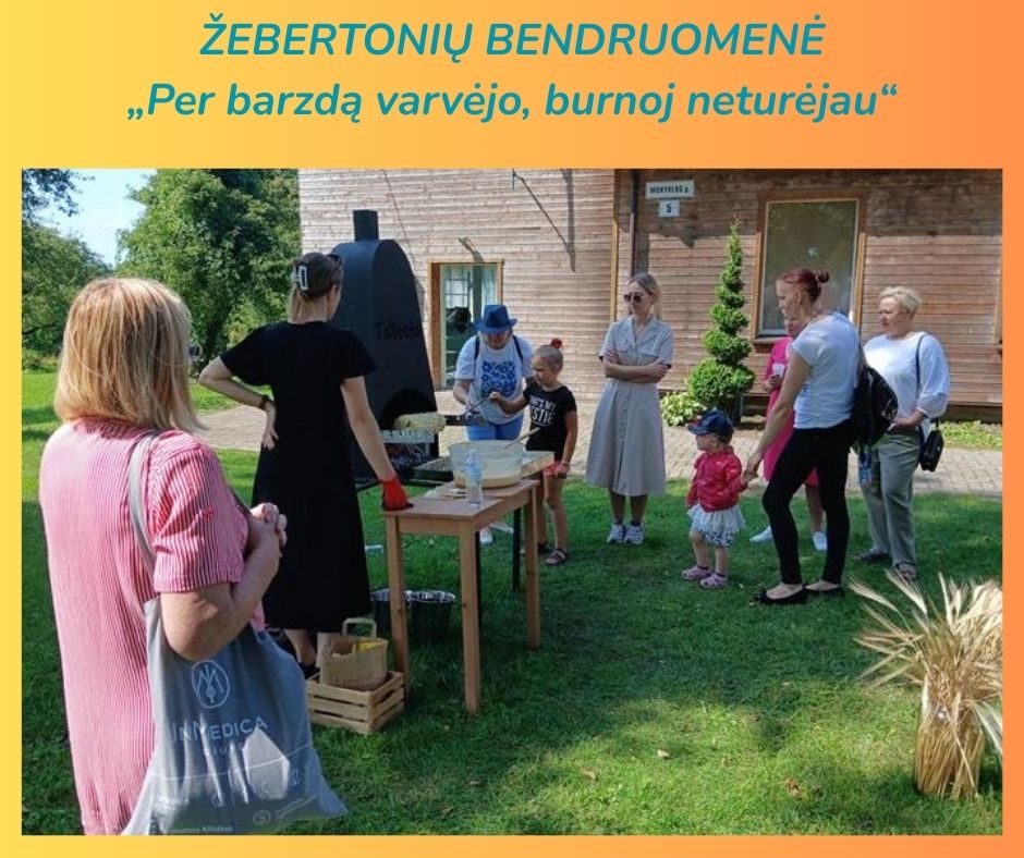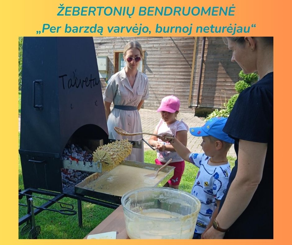 „Rugpjūčio 9 dieną Žebertonių bendruomenės kieme vyko edukacijos: smilkalų gamyba, žolelių giros ir šakočio kepimo ypatumai. Vaišinomės pienių arbata, degustavome įvairių rūšių žolelių giras. Visi norintys galėjo prisidėti prie šakočio kepimo, Sužinojome koks šio tradicinio gaminio receptas. Buvo viktorina apie šakočio ingridientų kiekį. Bibliotekoje veikė paroda „Apie žolynus, sveikatą ir tradicijas”.Programa skirta ugdyti pažinimo ir menines kulinarines kompetencijas per tradicinius gaminius, atskleisti mūsų šalies etinės kultūros išskirtinumą, jos archaiškumą, neišsenkantį kūrybiškumą. Renginio organizatoriai ir partneriai dėkoja gausiam susirinkusių dalyvių būriui už aktyvų dalyvavimą.