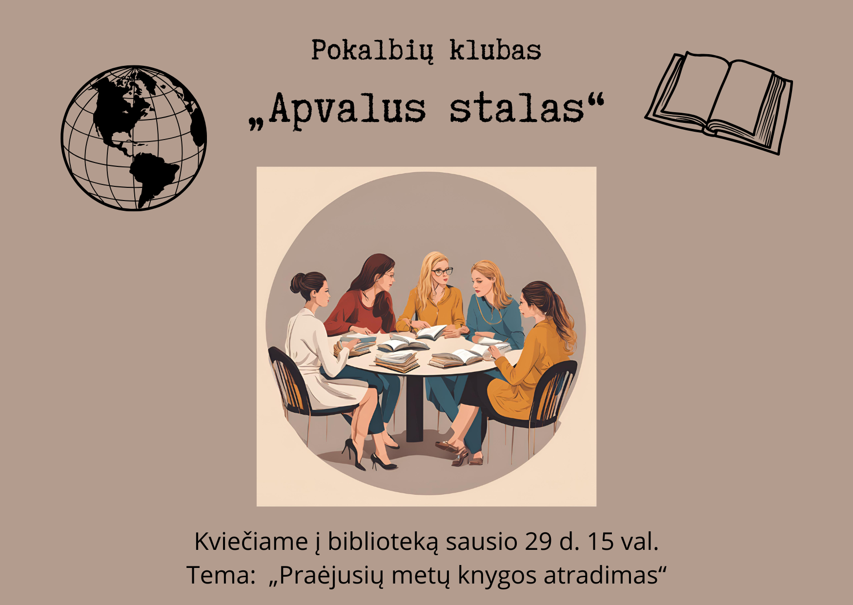 Susirinkome į pirmą pokalbių klubo „Apvalus stalas“ susitikimą, kurio tema – „Praėjusių metų knygos atradimas“. Buvo puiki proga pasidalinti įspūdžiais apie praėjusiais metais atrastas knygas, kas patiko, kas ne, kokios temos domina ir kokių knygų tikisi rasti bibliotekoje.