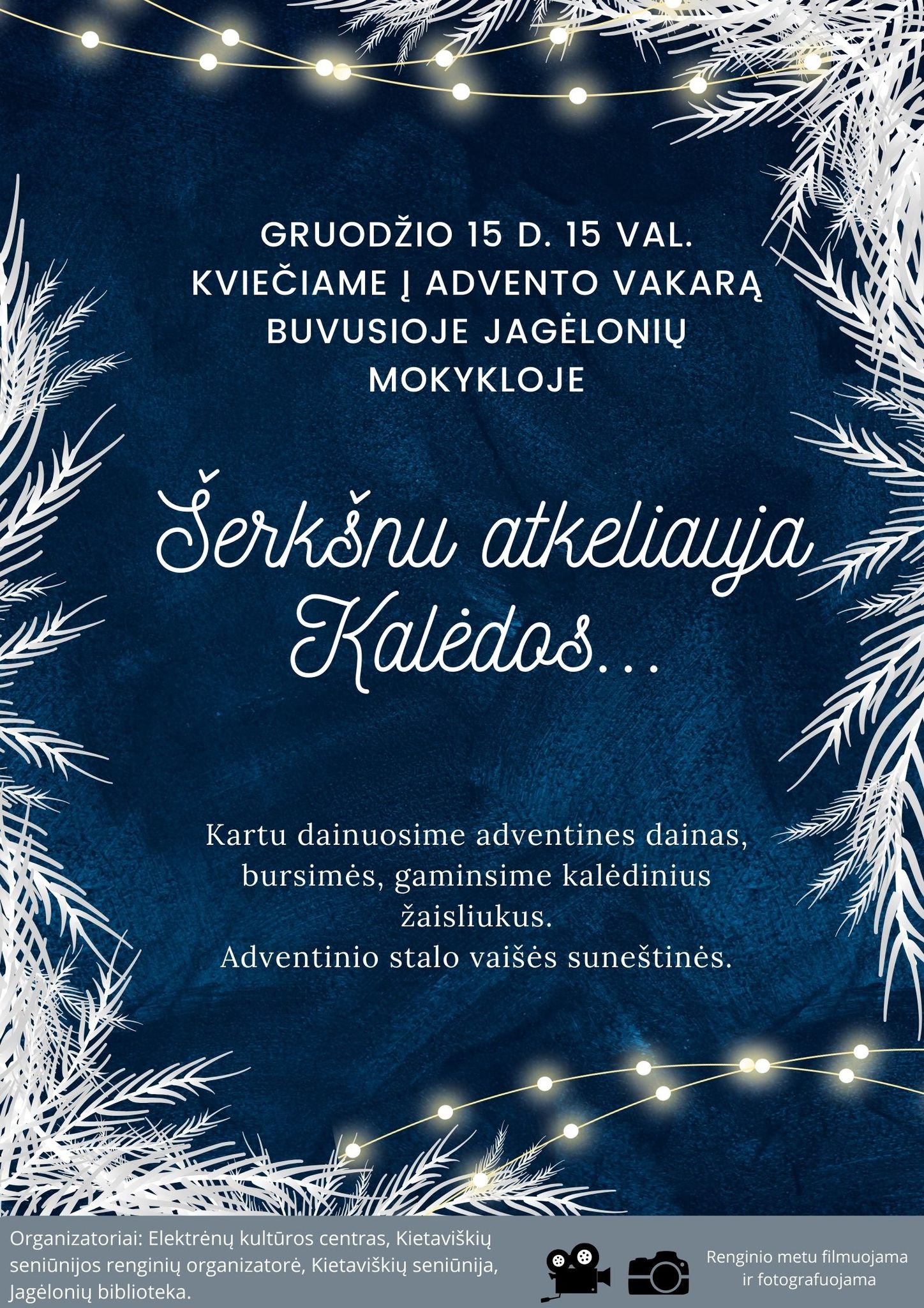 Dainuosime adventines dainas, gaminsime kalėdinius žaisliukus.