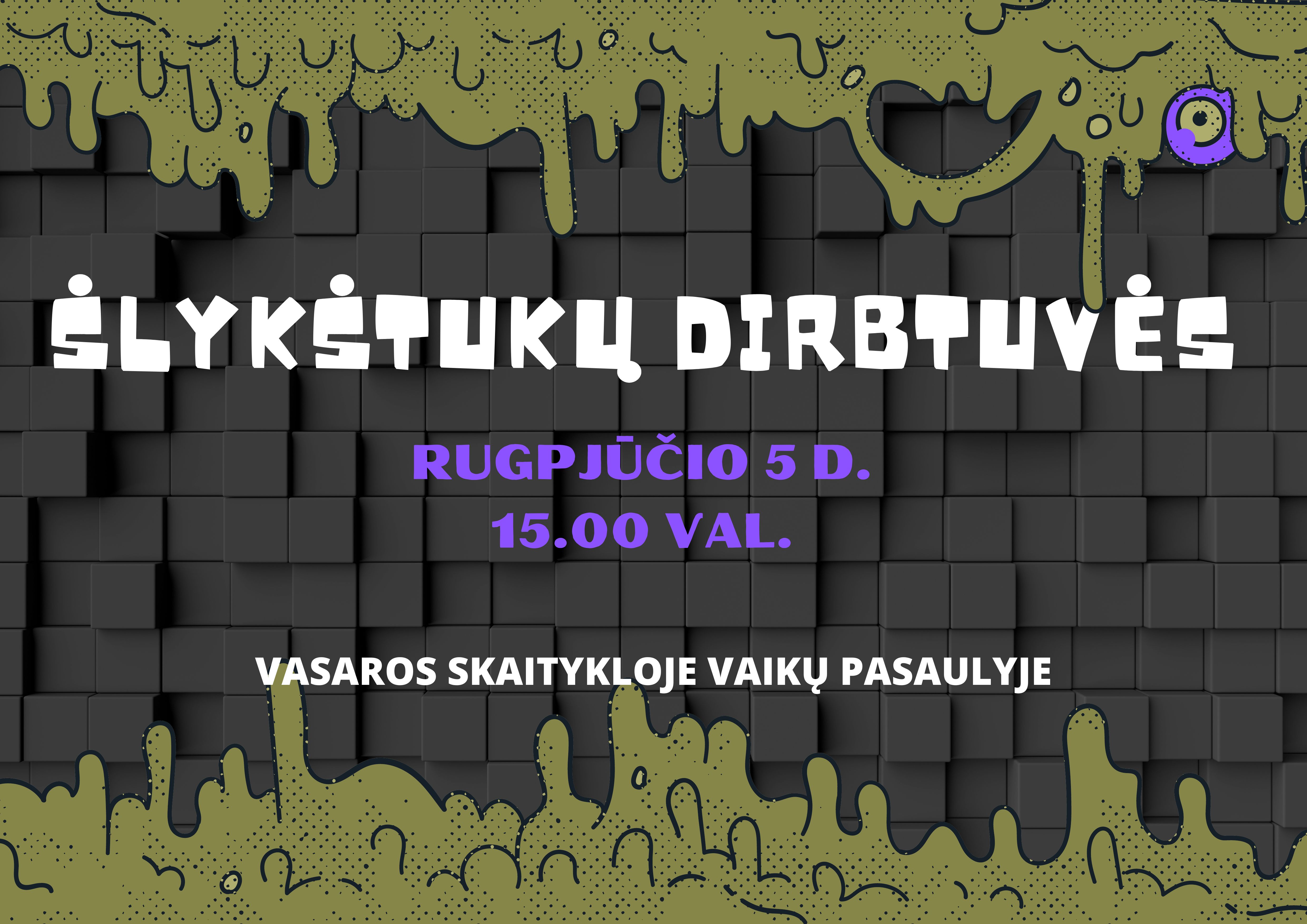 Slidus, glitus bei šlykštus. Tu turi tai pamatyti ir pasidaryti. Atsiraitosime rankoves ir kibsime į šlykštukų gamybos procesą. Dirbtuvėlės vyks Vasaros skaitykloje Vaikų pasaulyje.