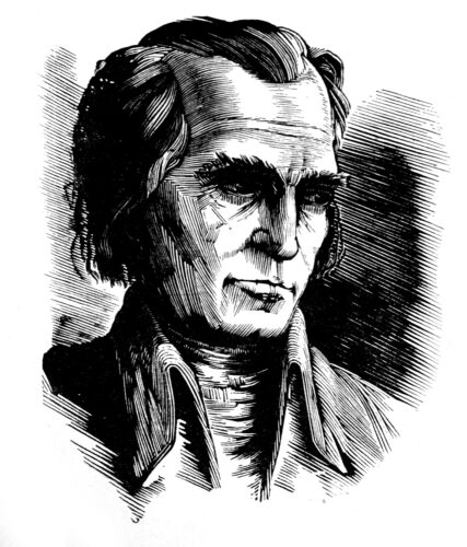 Sukanka 310 m., kai gimė kunigas, mokytojas, poetas Kristijonas Donelaitis. Donelaičio portretas. Vytautas Jurkūnas, 1955 m.