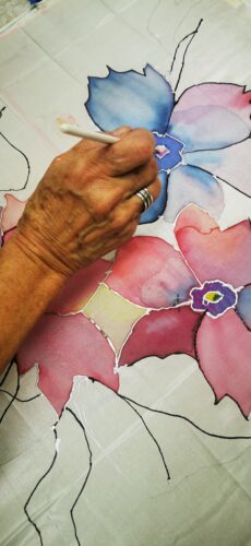 Programos metu dalyviai susipažins su tapybos ant šilko istorija. Išmoks naudotis skirtingomis tapybos technikomis ir priemonėmis, susipažins su tapybos ant šilko ypatumais ir specifika. Užsiėmimuose aptarsime komponavimą, spalvas, dekoravimo subtilybes, šilko priežiūros ypatumus. Sukursime unikalią skarelę, šalikėlį ar paveikslėlį. Užsiėmimai dalyviams suteiks naujas savirealizacijos galimybes, skatins saviraišką, kūrybiškumą, bendruomeniškumą, meninių kompetencijų ugdymą.