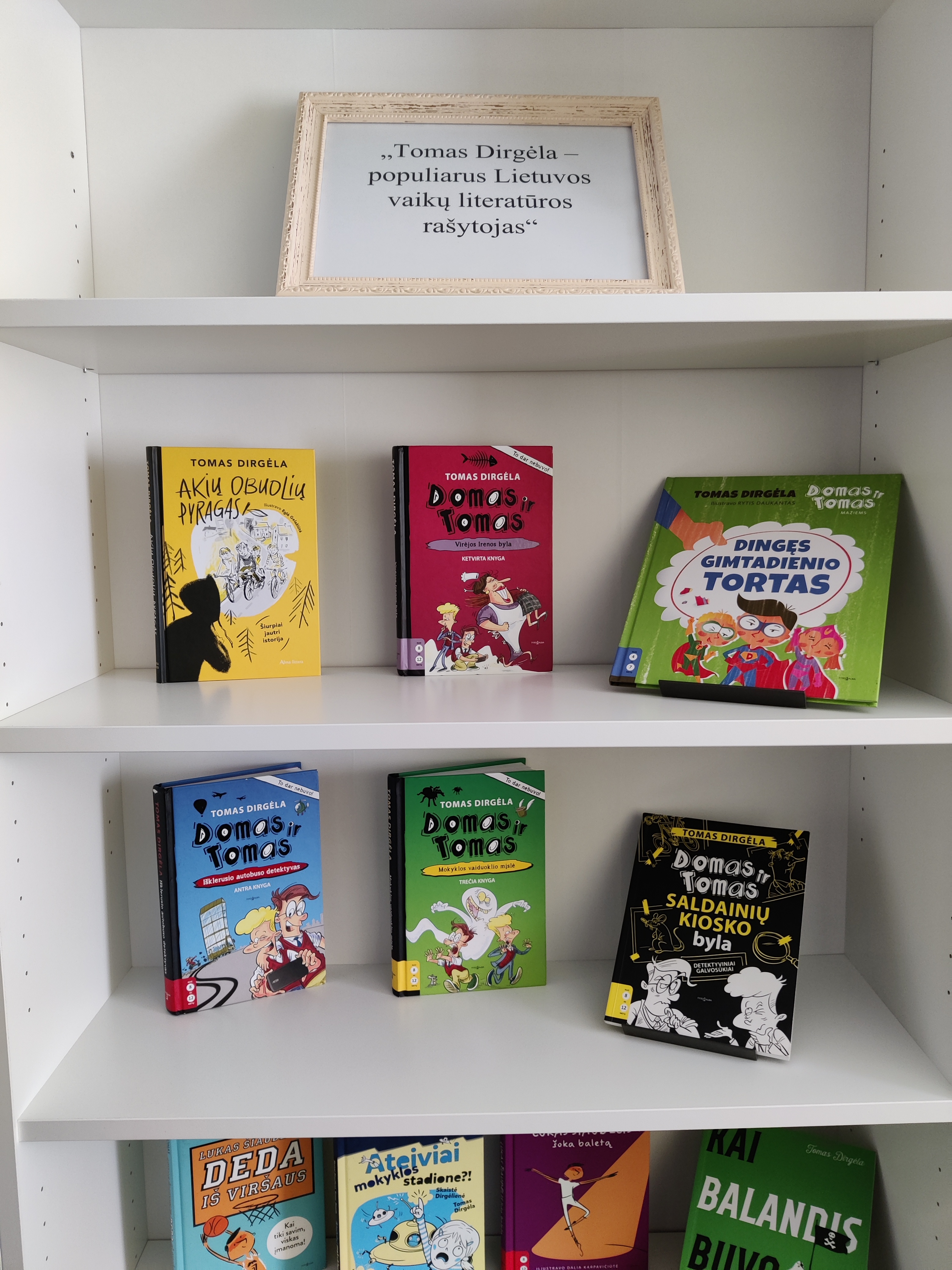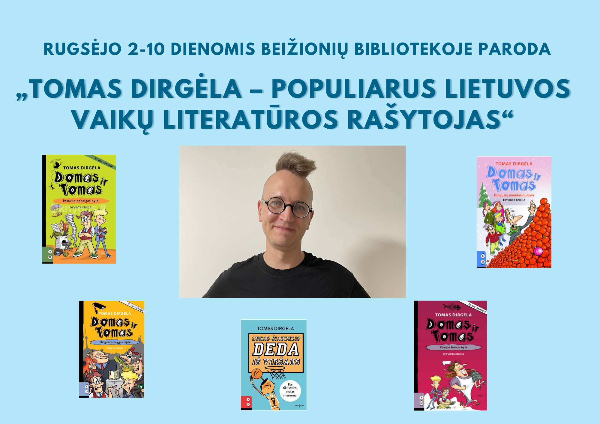 Paroda skirta Tomo Dirgėlos 35 metų sukakčiai paminėti. Tomas Dirgėla gimė 1989 metais, jo gimtasis miestas yra Vilkaviškis. Rašytojas debiutavo 2013 metais su kūriniu „O tempora!“, kuris buvo skirtas suaugusiems, nuo 2014 metų pradėjo rašyti vaikams ir paaugliams skirtą literatūrą. Rašytojas labai greitai sulaukė pasisekimo. Jis išgarsėjo 2016 metais savo knygų serija apie Tomą ir Domą. Jo knygos yra išvertos į 13 užsienio kalbų. Rašytojas apdovanotas IBBY Lietuvos skyriaus Aldonos Liobytės premija už reikšmingiausią metų debiutą (2015), IBBY Lietuvos skyriaus antrąja premija už geriausią metų knygą vaikams (2016), Vaikų literatūros premija (2022).