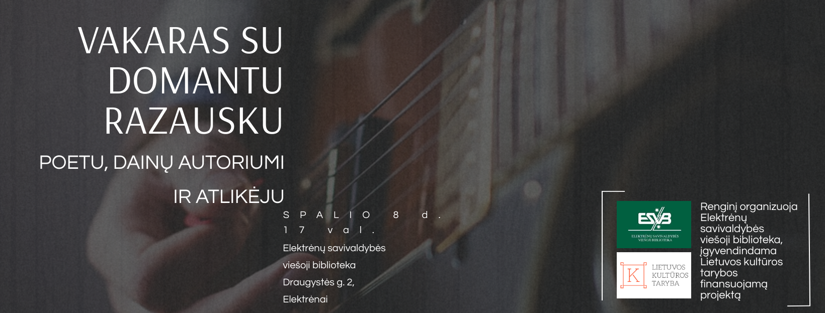 Maloniai kviečiame visus ateiti į susitikimą su poetu, dainų autoriumi ir atlikėju Domantu Razausku.