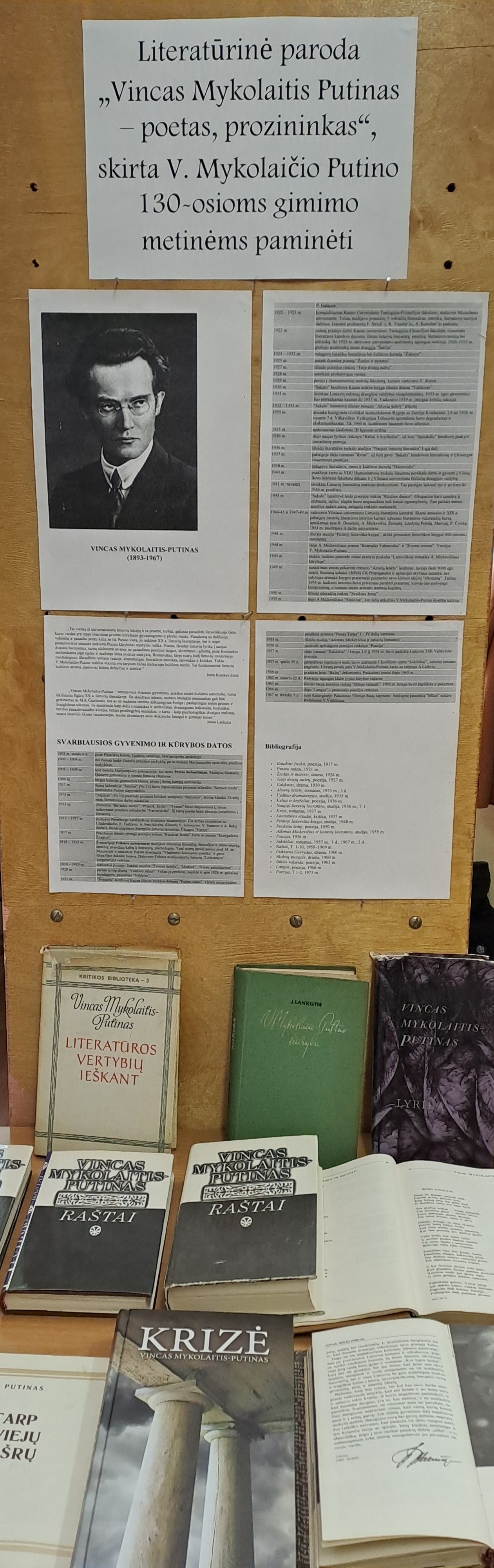 Beižionių bibliotekoje literatūros paroda „Vincas Mykolaitis Putinas - poetas, prozininkas“